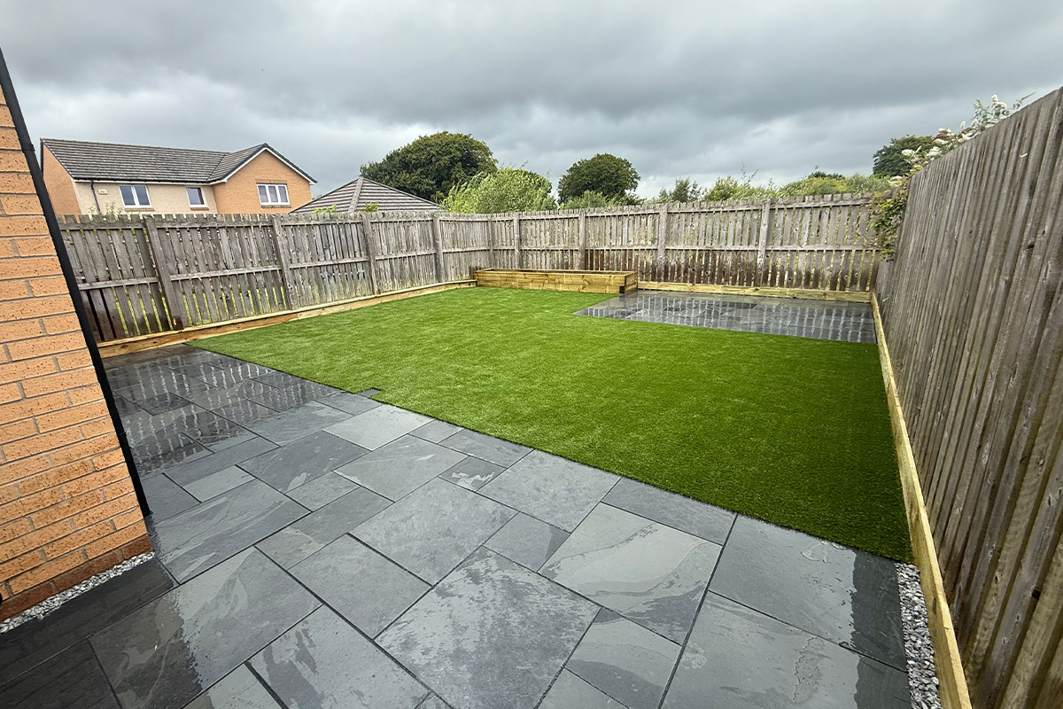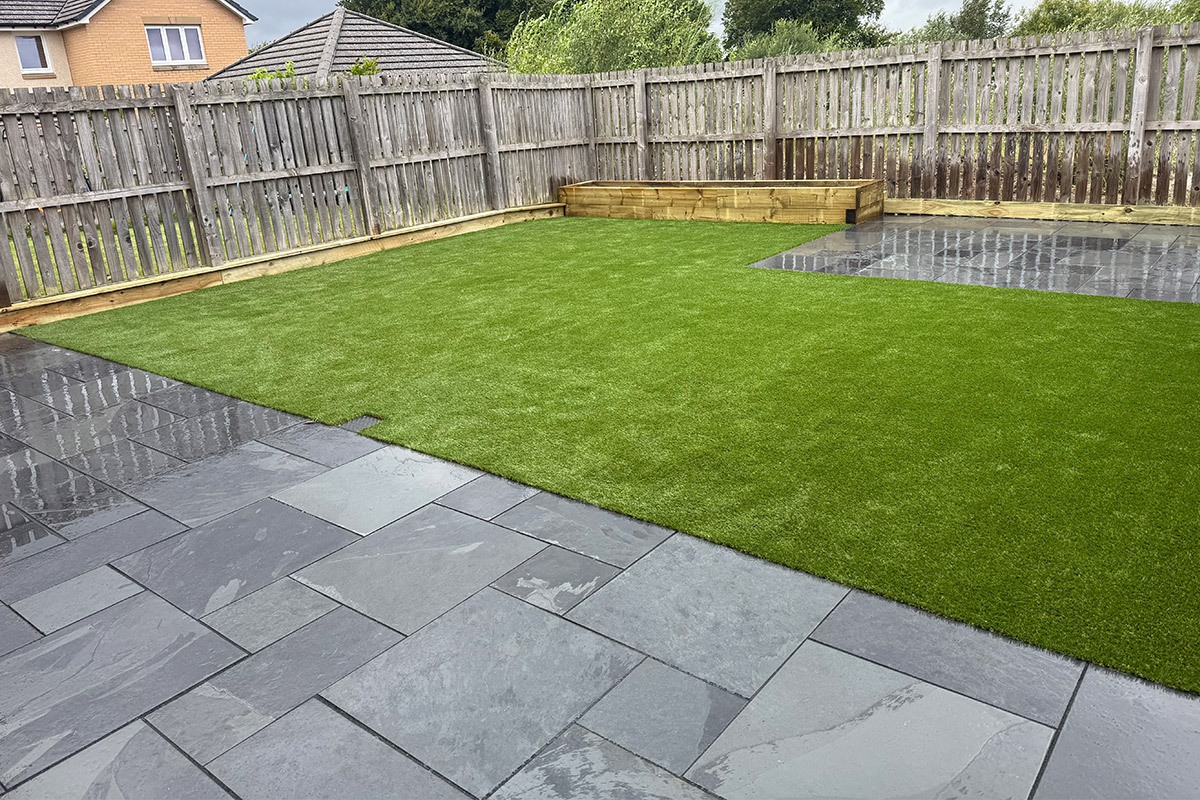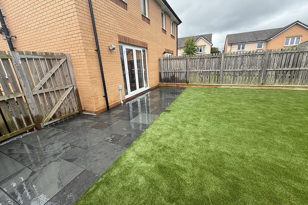 To create a low-maintenance garden makeover, our clients requested artificial grass. Artificial grass is a great alternative to traditional grass because it provides the same greenery and feel without needing watering or mowing, which is why it is a popular choice for many families across Glasgow.