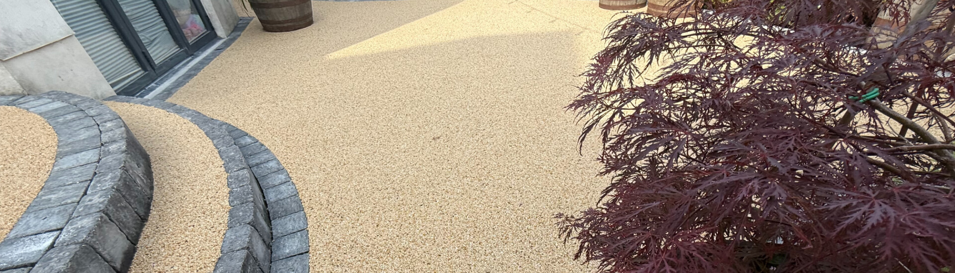 To develop the main resin patio and steps, we used Daltex Resin Bound paving in Cornfield, which is a beautiful natural shade that provides a contrast to the cool-toned modern home.